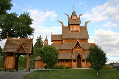 This is a replica of a Gol Stave Church that is located in Bygdoy Park in Oslo, Norway. The original was built around 1250 and was moved to Olso about 100 years ago. The project began in October, 1999 and the church was opened on October, 2001.